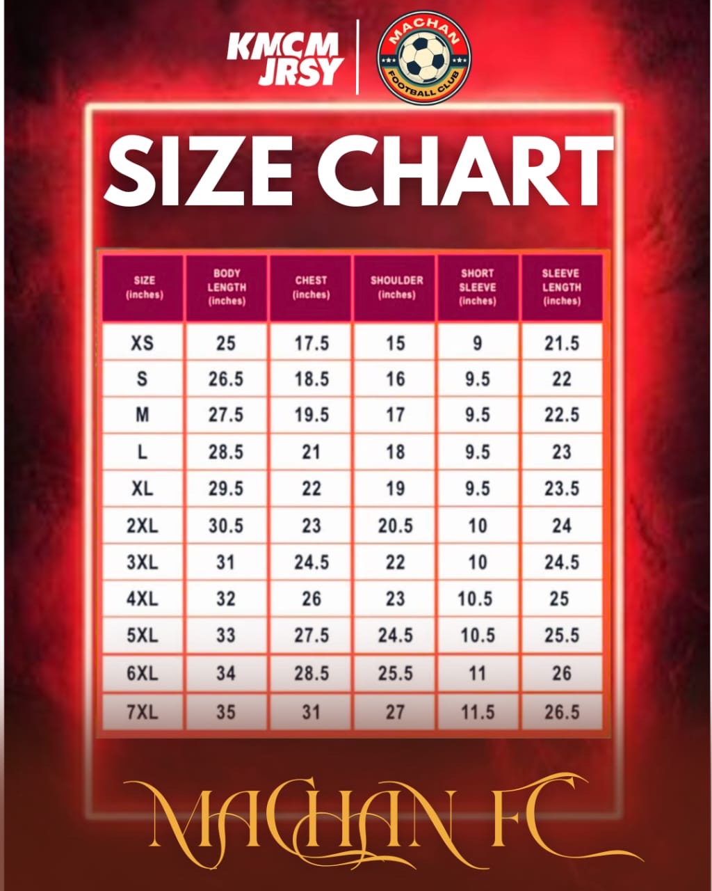 S, M, L, XL, 2XL, 3XL, 4XL Add on RM5, 5XL Add on RM5, 6XL Add on RM10, 7XL Add on RM10